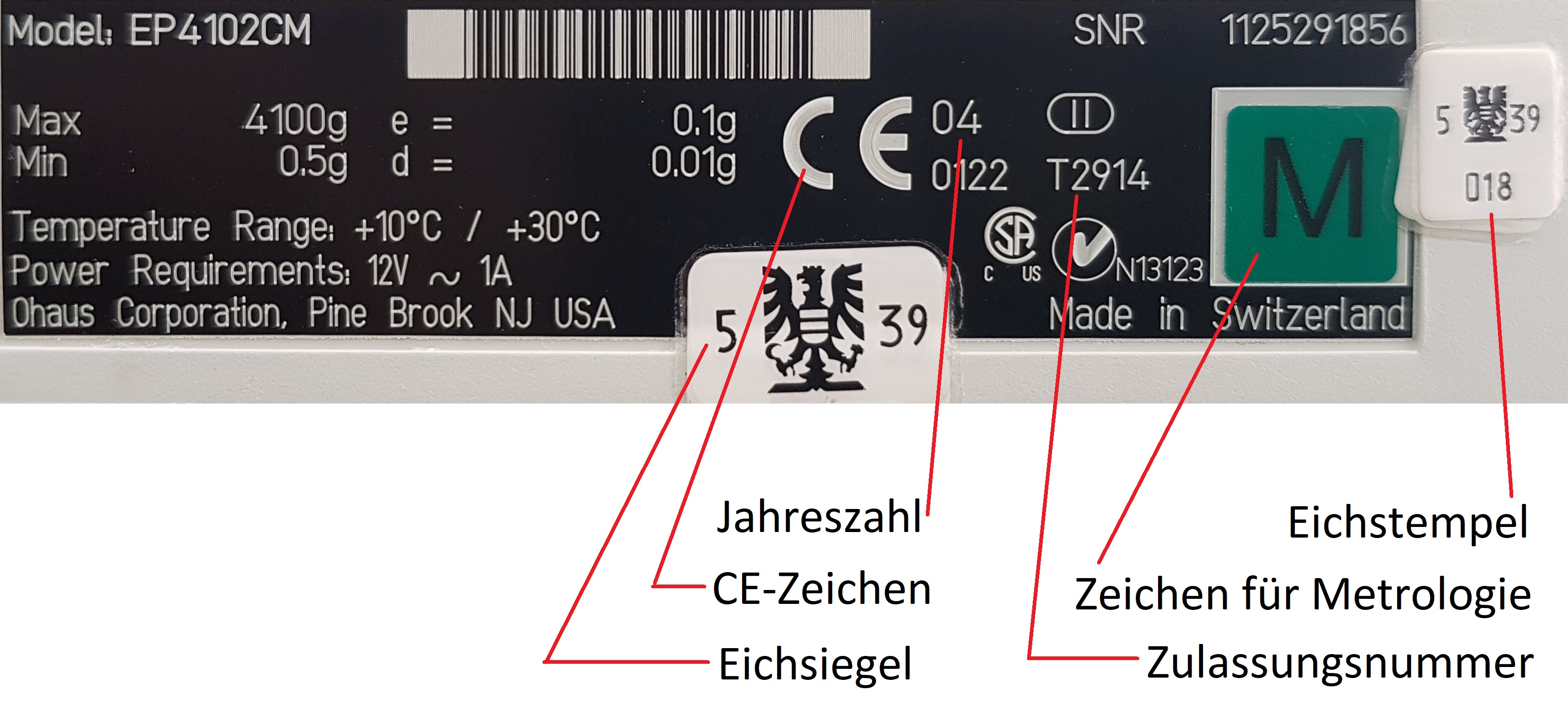 Wenn zumindest teilweise die folgenden Informationen auf dem Typenschild der Waage dargestellt sind, ist sie wahrscheinlich eichfähig.